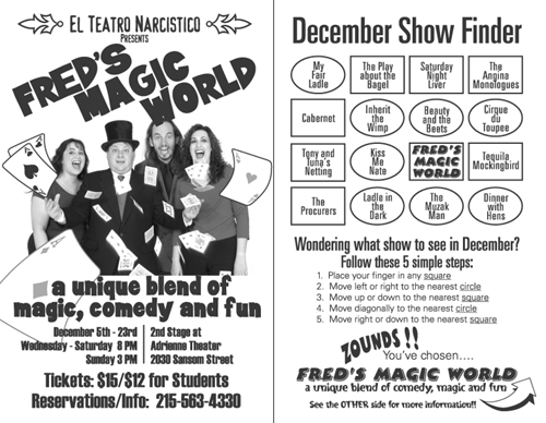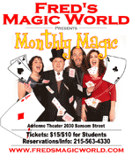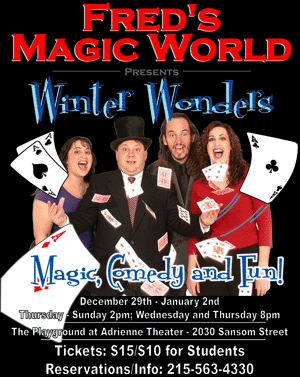 Summer Magic Series July 9 - 12th, 2015 Act II Playhouse Halloween in December 2010 Monthly Magic 2005 & 2006 Winter Wonders 2004, 2005, 2006, 2007, 2008, 2014 Halloween Magic Spooktacular 2006 Halloween MagicSpooktacular 2003 Fred's Magic World 2001 Weird Hobbies 2000 In Bed Together 1999
